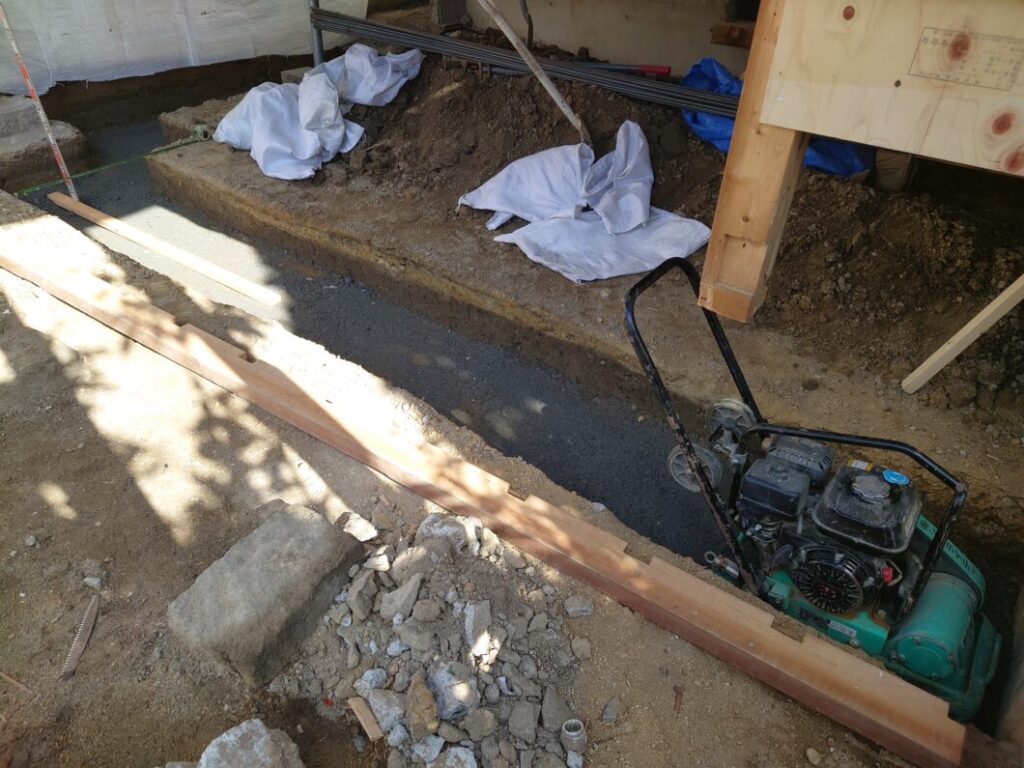 HOME > 不用品回収・工事現場 > 不用品回収・工事現場 交野市基礎工事 投稿日:2026年2月17日 布基礎の砕石転圧、捨コンをしました。 解体、基礎工事、産業廃棄物回収はシンライテックにお任せください。 -不用品回収・工事現場