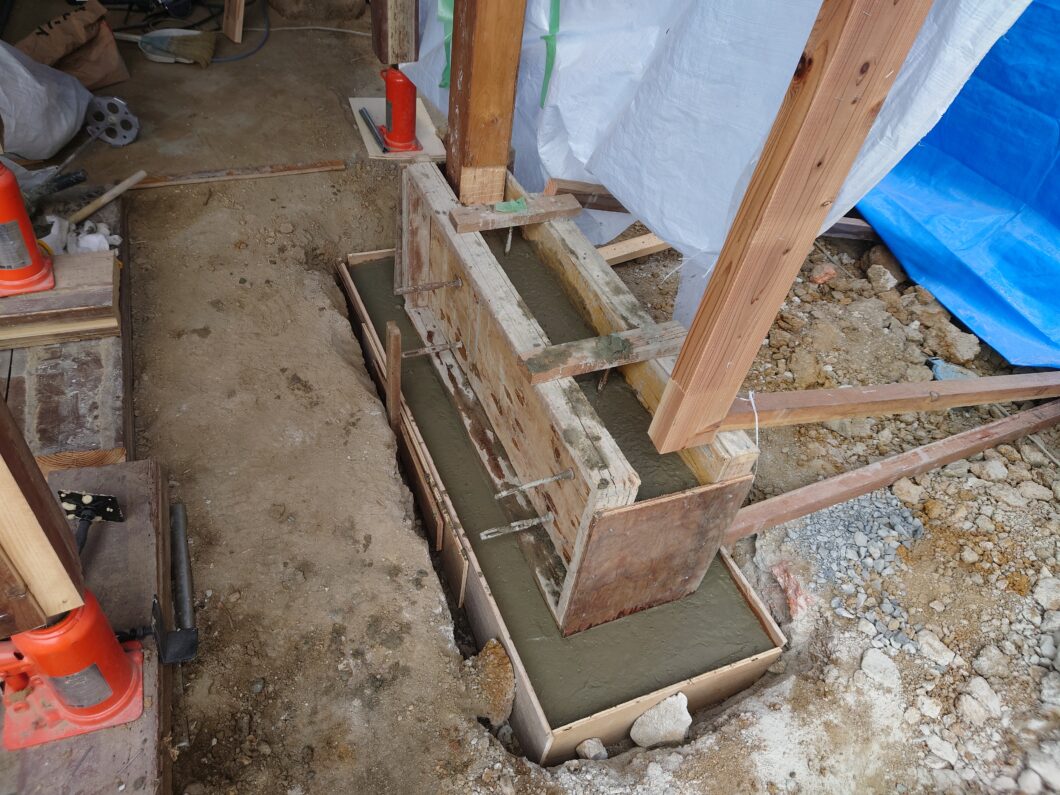 布基礎の生コン打設、天端付をしました。