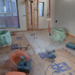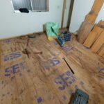 各所フロア、床ボードの解体をしています。 解体、基礎工事、産業廃棄物回収はシンライテックにお任せください。